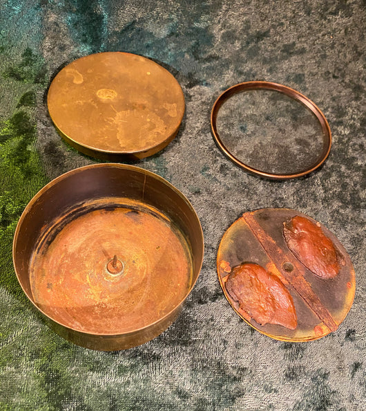 Scarce example of a floating card compass made by well known American maker John Bliss & Co New York in the last half of 19th century. It is a small version of the nautical compasses used by sailors on a small vessel. This particular piece has a heavy brass case with nice patina and wonderful paper floating card. Dimensions: 70 mm diameter and 35 mm height.
