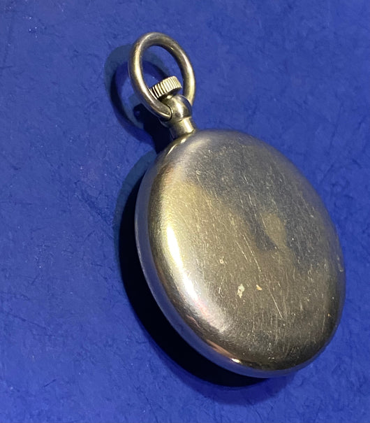 SOLD Good example of antique compass made by well known scientific instruments maker Taylor from  Rochester New York. The patent on the compass face is January 8 1918. The compass has a excellent silvered face with a blue steel  compass needle resting on a stone. Condition is excellent for the age. Dimensions 44 mm diameter and 8 mm height.